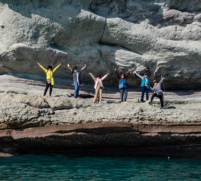 파도와 어우러져 섬의 독특한 지형미를 보여준다.