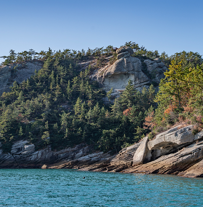 파도가 빚어낸 기암괴석과 붉은 절벽이 어우러진 금당도.